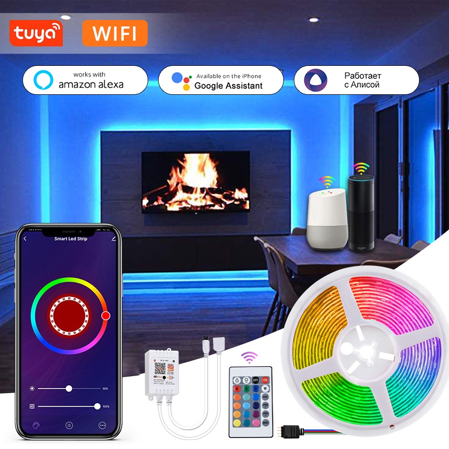 Tuya Smart Vida WiFi RGB Fita LED 5M 10M 5050 12V APP Controle De Voz Com Alexa Google Home Para Decoração De Quarto