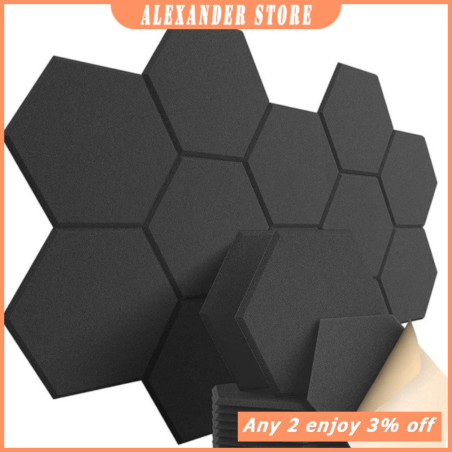 Painéis Acústicos Autoadesivos Alex 12pcs , Estofamento À Prova De Som , Hexagonais De Espuma De Alta Densidade , Painel De Parede Acústico Para Estúdio Doméstico Interno