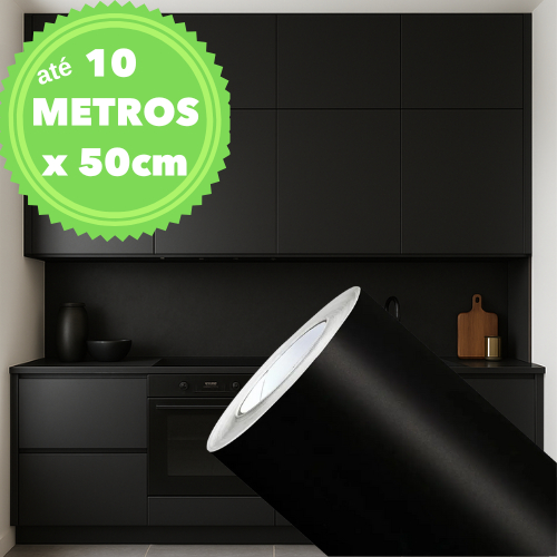 Até 10 METROS X 50CM Adesivo Vinil Preto Fosco ou Brilho Envelopamento Móveis Armário Parede Decoração Geladeira Fogão