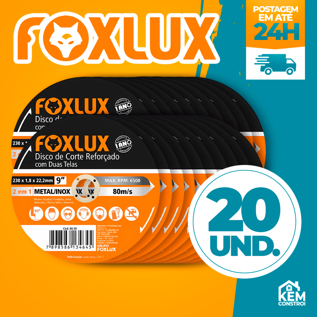 Kit Disco De Corte Aço Carbono, Aço Inox e Metais 4.1/2X1,0mm – Foxlux