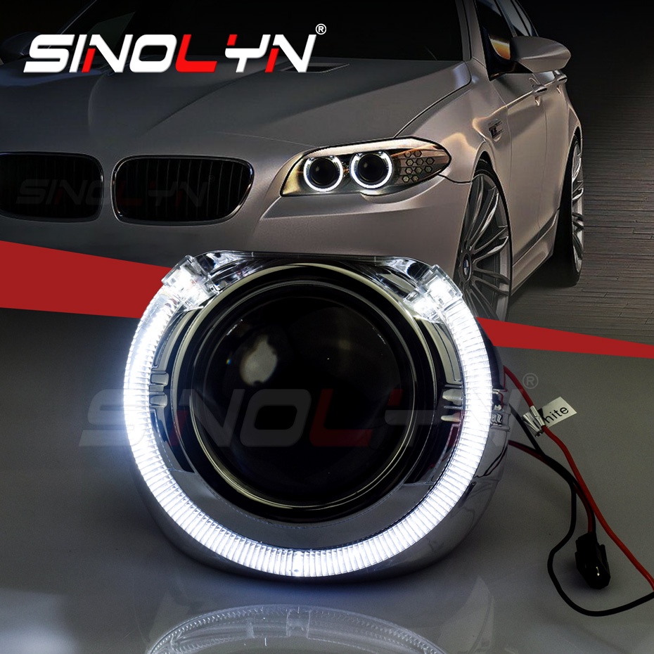 Projetor Sinolyn LED Angel Eyes Bi Xenon Para Lentes De Farol H7 H4 2.5 Inch Preto H1 HID Carro Acessórios De Sinalização De Giro Do