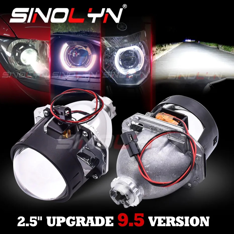 Sinolyn 9.5 Versão Bi Xenon Lentes Projetor Para Farol H4 H7 2.5 " Olhos De Anjo Lâmpadas Carros Motocicleta Luz Retrofit Uso H1 HID
