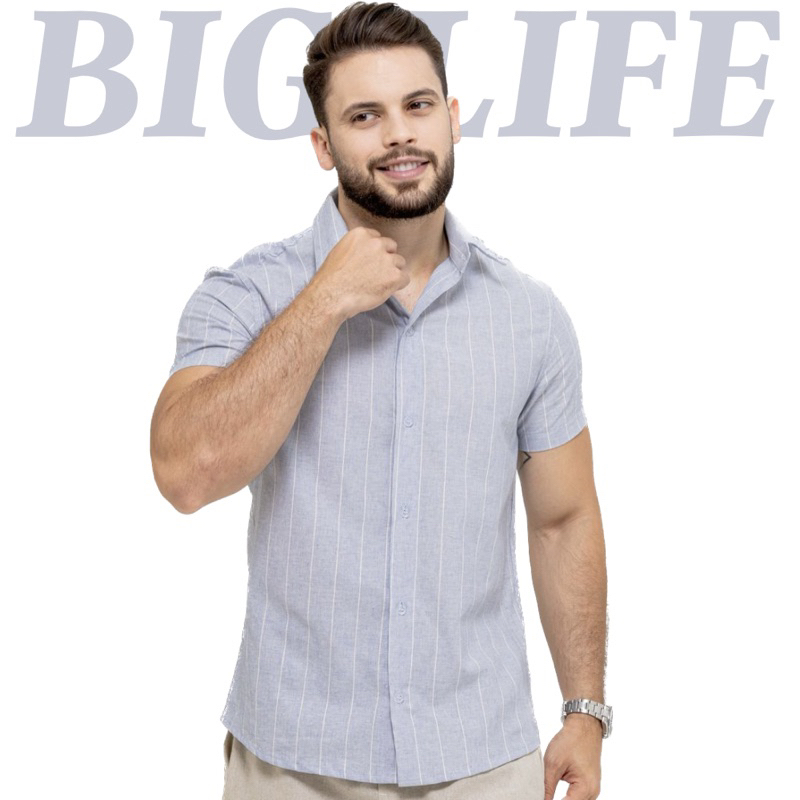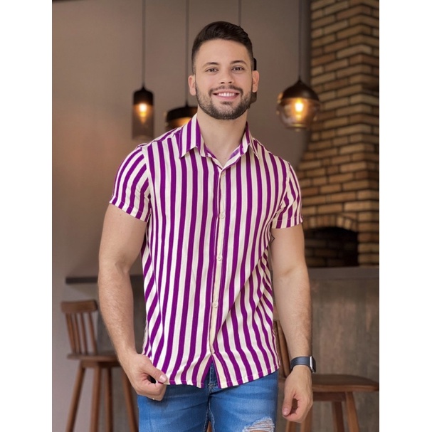 camisa listrada masculina manga curta de botão em viscose blusa masculina
