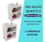 Carrinho Auxiliar 2 Bandejas e 1 Prateleira organizador salão cabelereira maquiagem estetica clinica multiuso manicure pedicure