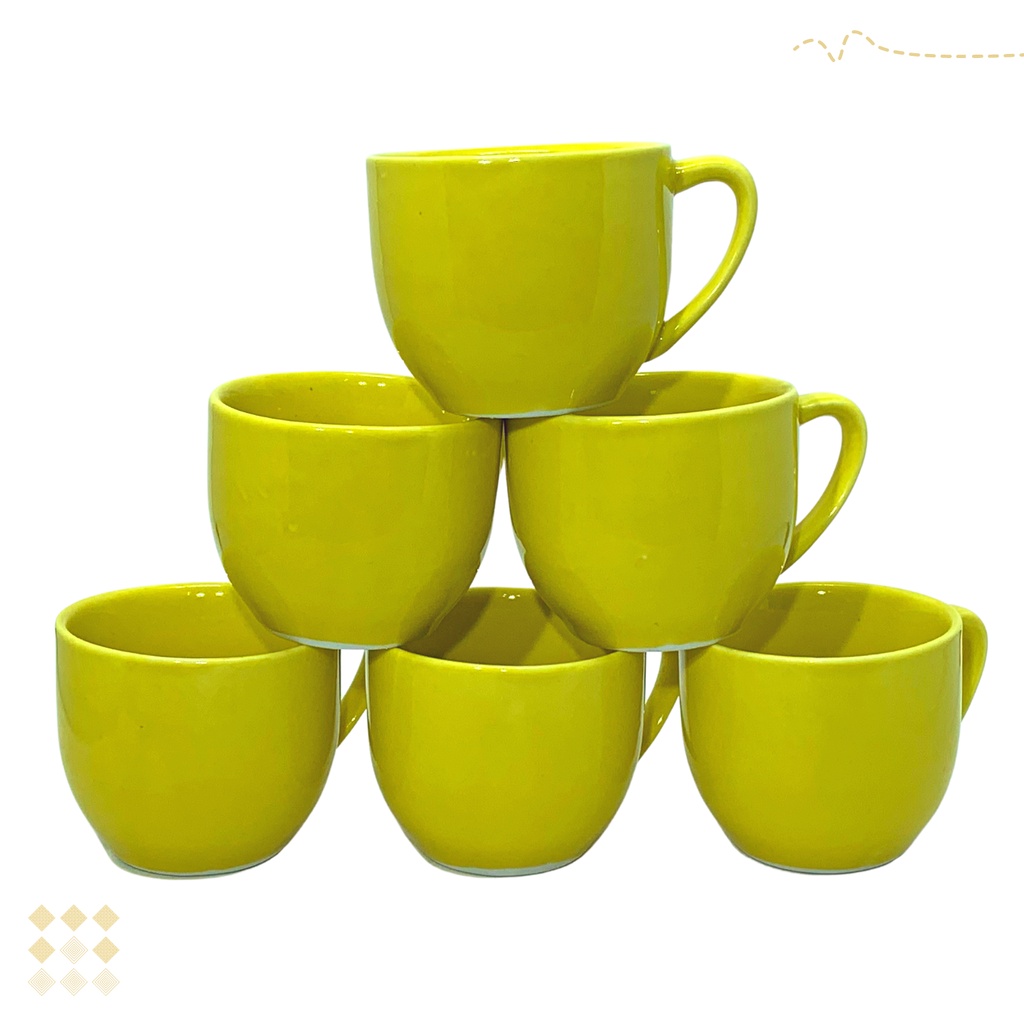 Jogo 6 Xicara Café Chá Porcelana Amarela 200ml - Mundo da Porcelana Lar e Decoração