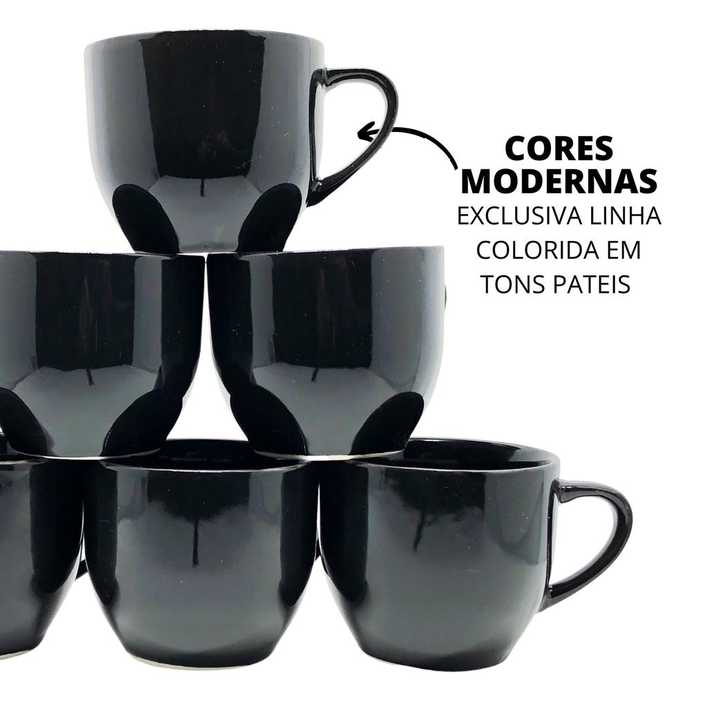 Jogo 6 Xicara Café Chá Porcelana Preta 170ml - Mundo da Porcelana
