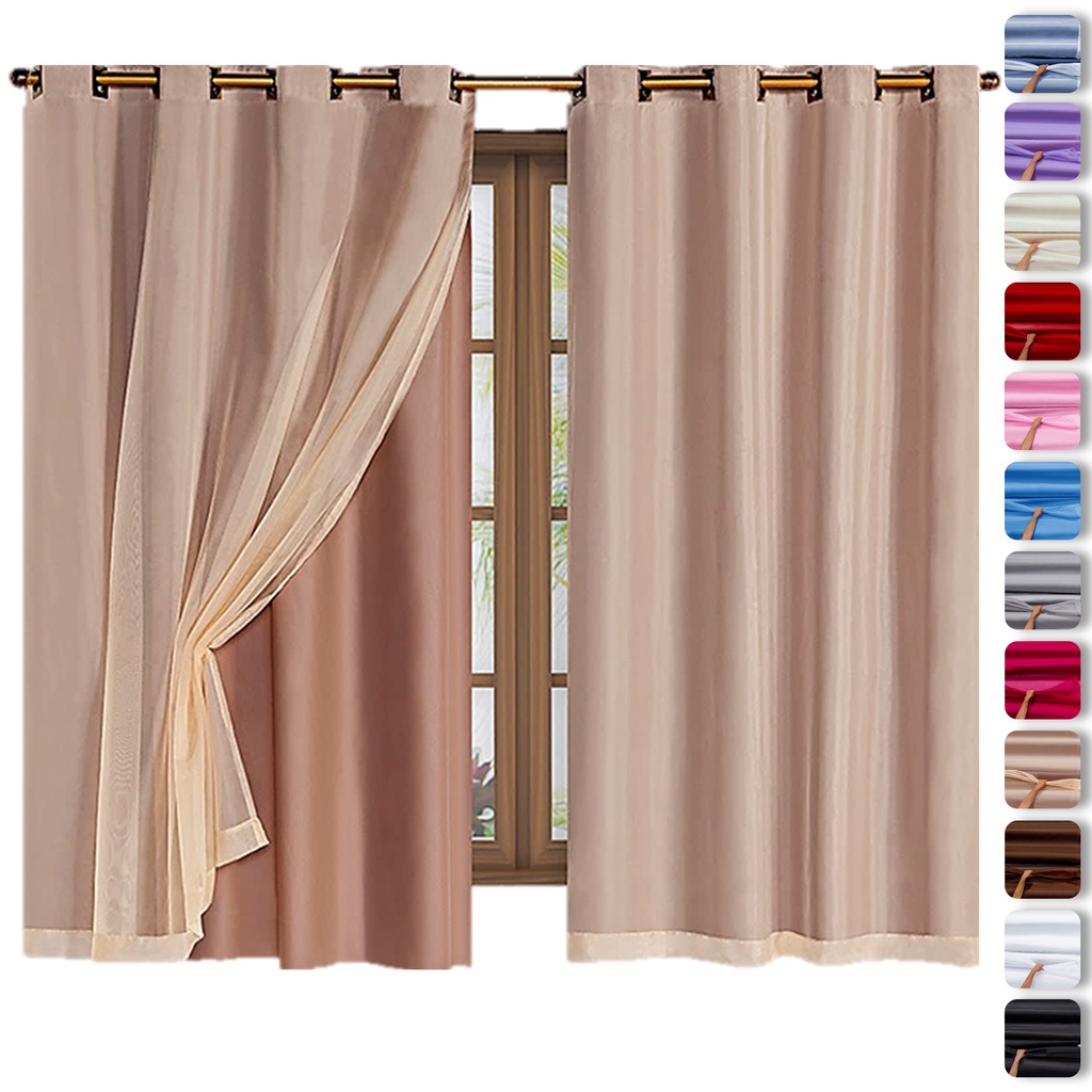 Cortinas blackout para Quarto com voil vários Tamanhos tecido xadrez ou liso cortina decoração de casa