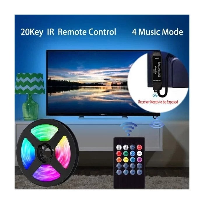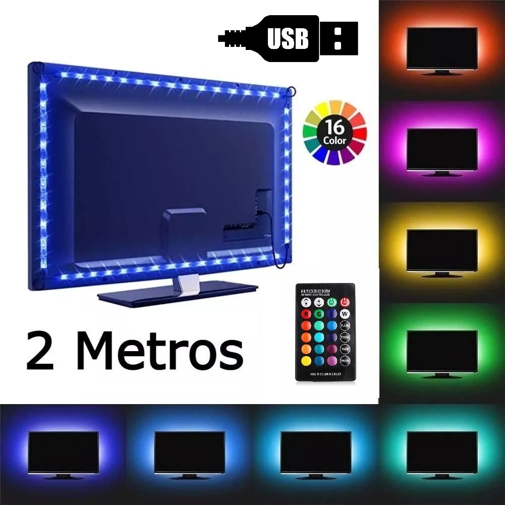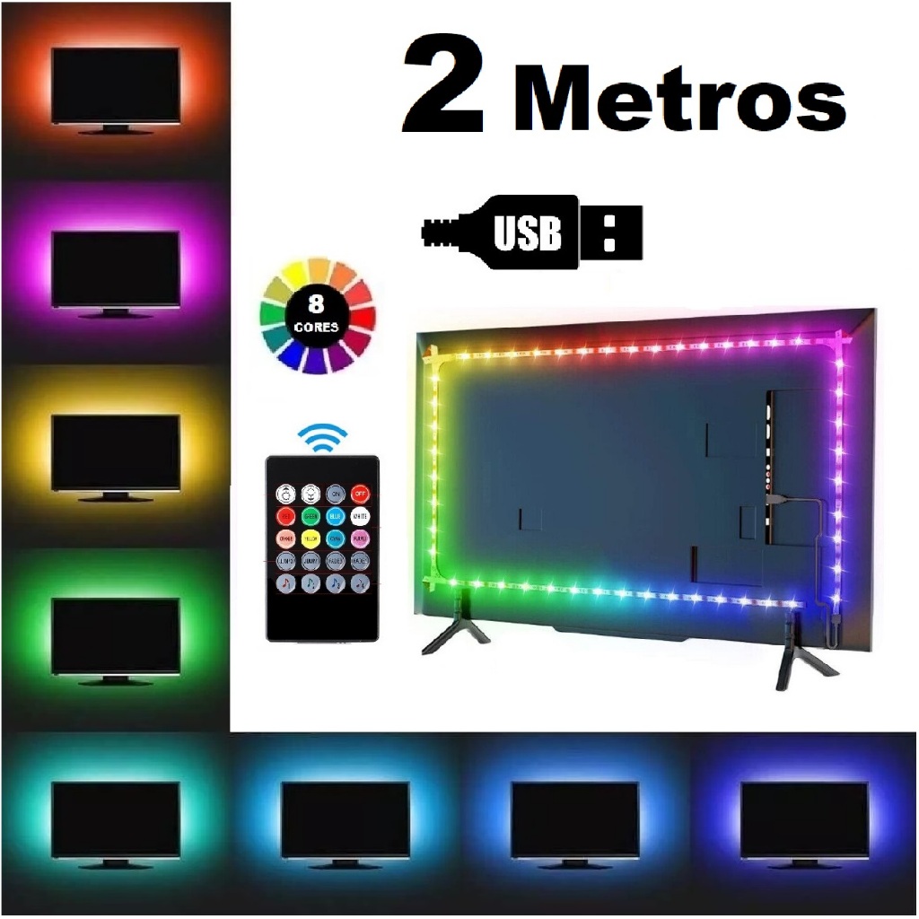 Fita LED USB Para TV Até 43" Com Sensor Som Rítmico e Controle _ 2 Metros 32 LEDs RGB OFERTA