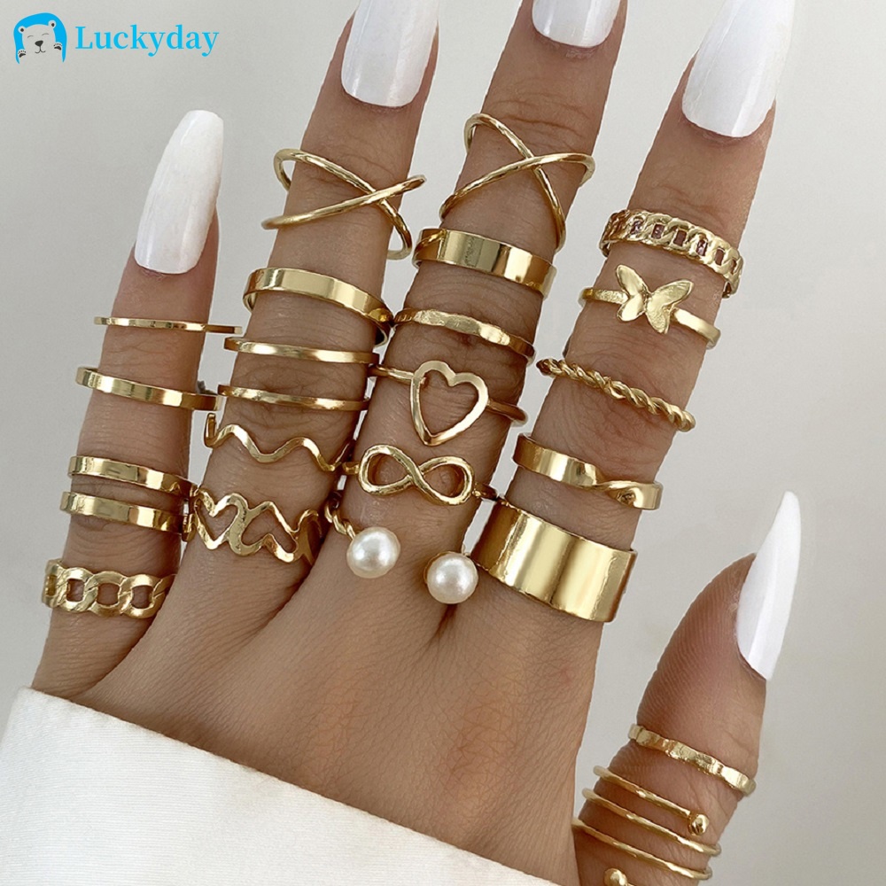 Boho Ouro 22 Pcs Coração Anéis Set Para As Mulheres Do Vintage Cruz Geométrica Pérola Borboleta De Dedo Das Presente Da Jóia Na Moda