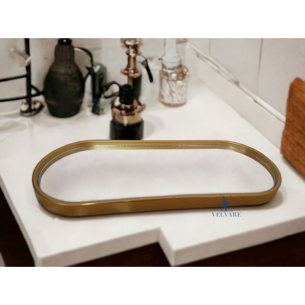 Kit Banheiro Lavabo Vidro Difusor, Saboneteira e Vasinho Luxo com Bandeja Espelhada e Espelho.