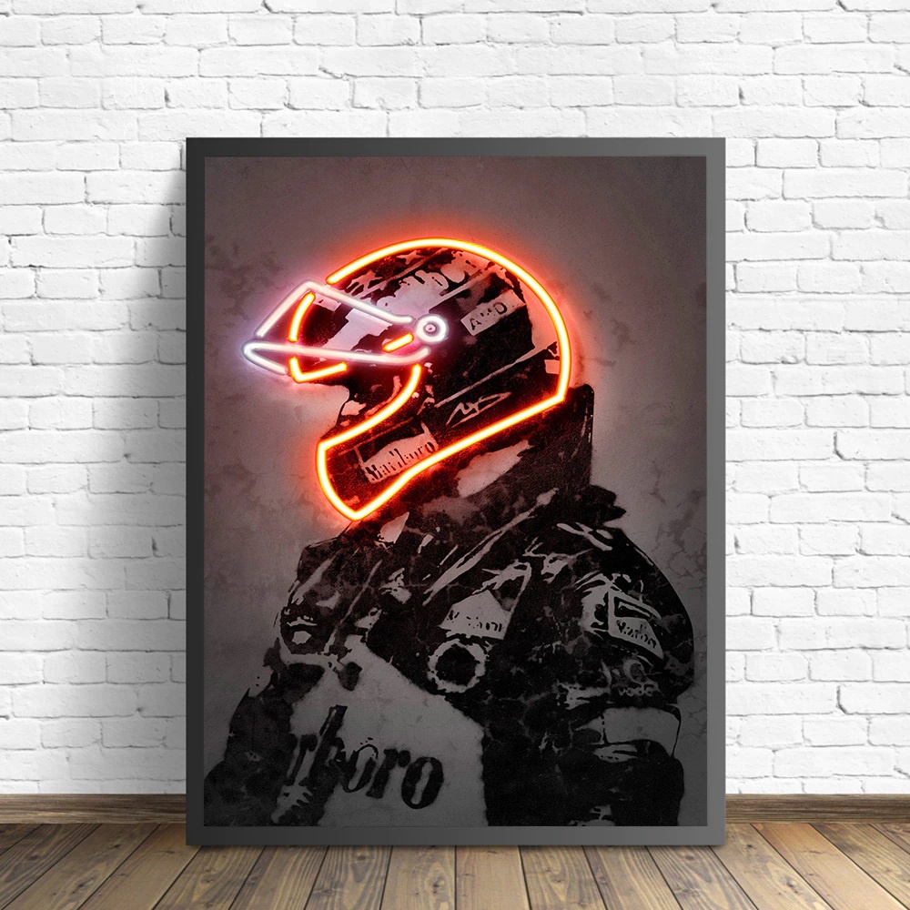 Quadro decorativo 3 peças 40x60 moderno abstrato neon Ayrton Senna capacete fórmula 1 f1 decoração para casa sala quarto hall interiores corredores