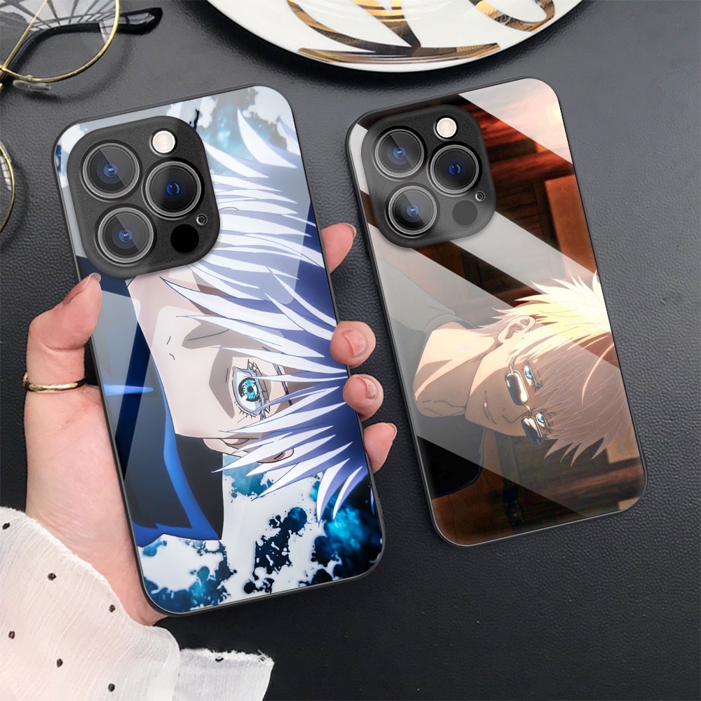 Caixa Dura De Vidro Temperado Compatível Para iPhone 14 Pro Max 13 12 11 XR X Xs 7 8 SE 2022 Anime Jujutsu Kaisen Padrão De Proteção Da Câmera Luxo