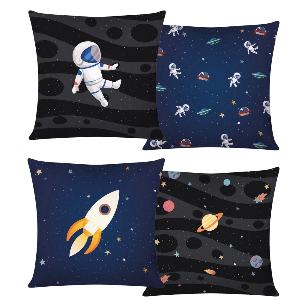Kit 04 Capa de Almofada 42cm x 42cm Digital Estampa Astronauta Azul Infantil