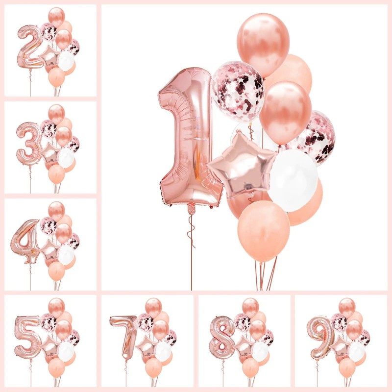 Kit Balões Rose Gold - balões Látex e Metalizado com nome e idade ou cartela para personalizar