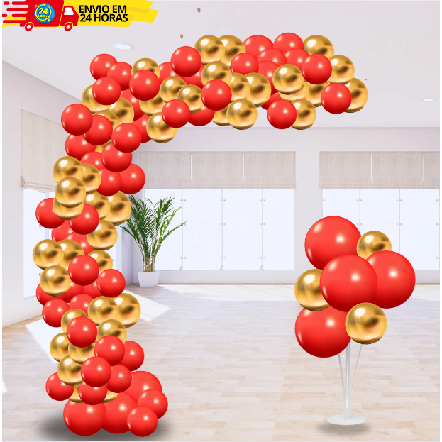 Kit 150 Balões Latex Vermelho + Dourado Metalizado Cromado Para Festas e Aniversário