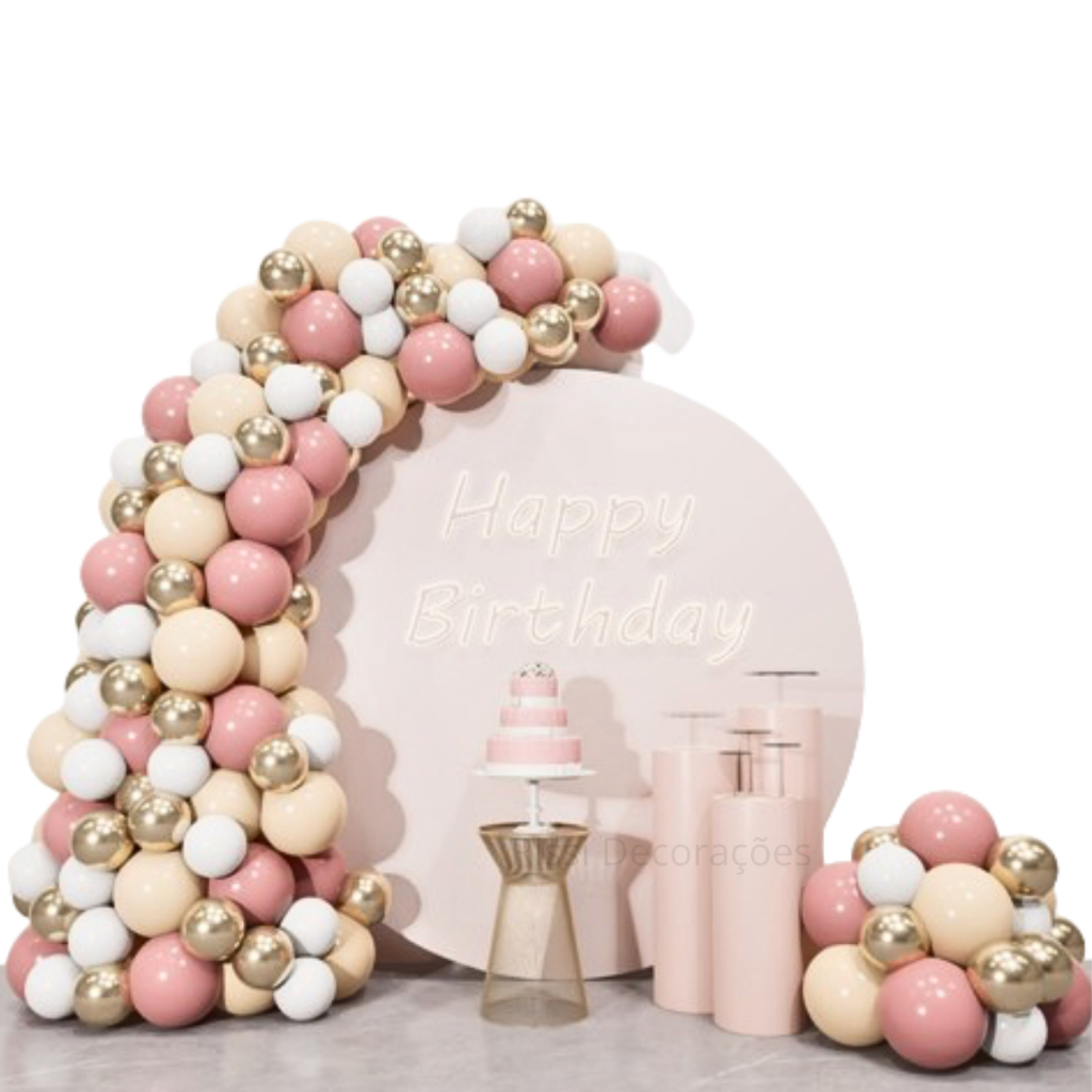 Kit 125 Balões Rosa + Branco + Rose Gold Metalizado - Balão Bexiga Candy/Cromado Para Festas e Aniversários