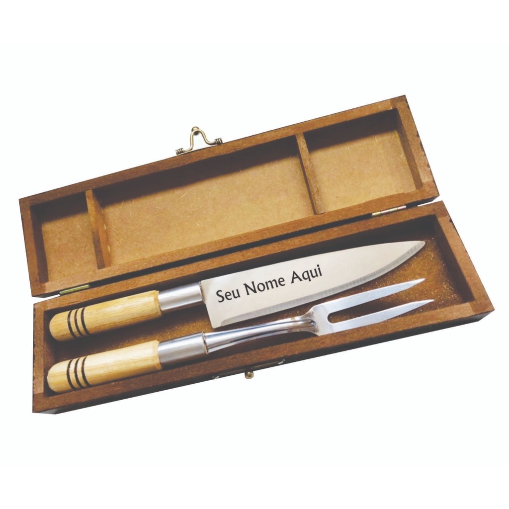 Faca E Garfo De Churrasco Com Estojo Personalizado A Laser