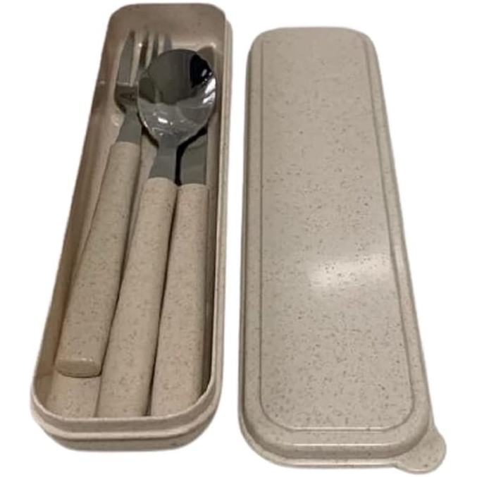 Jogo de Talheres com estojo Garfo Faca Colher Inox e Cabo Biodegradável Marmita Kit Refeição