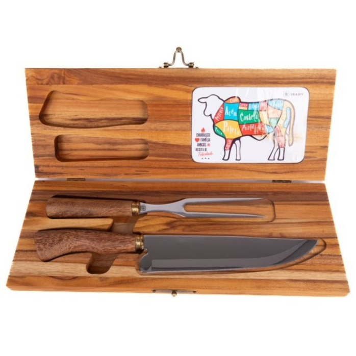 Kit Churrasco Tábua de Carne Grande e Estojo de faca e Garfo Inox Personalizado