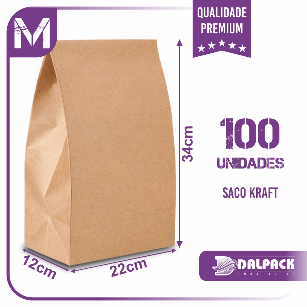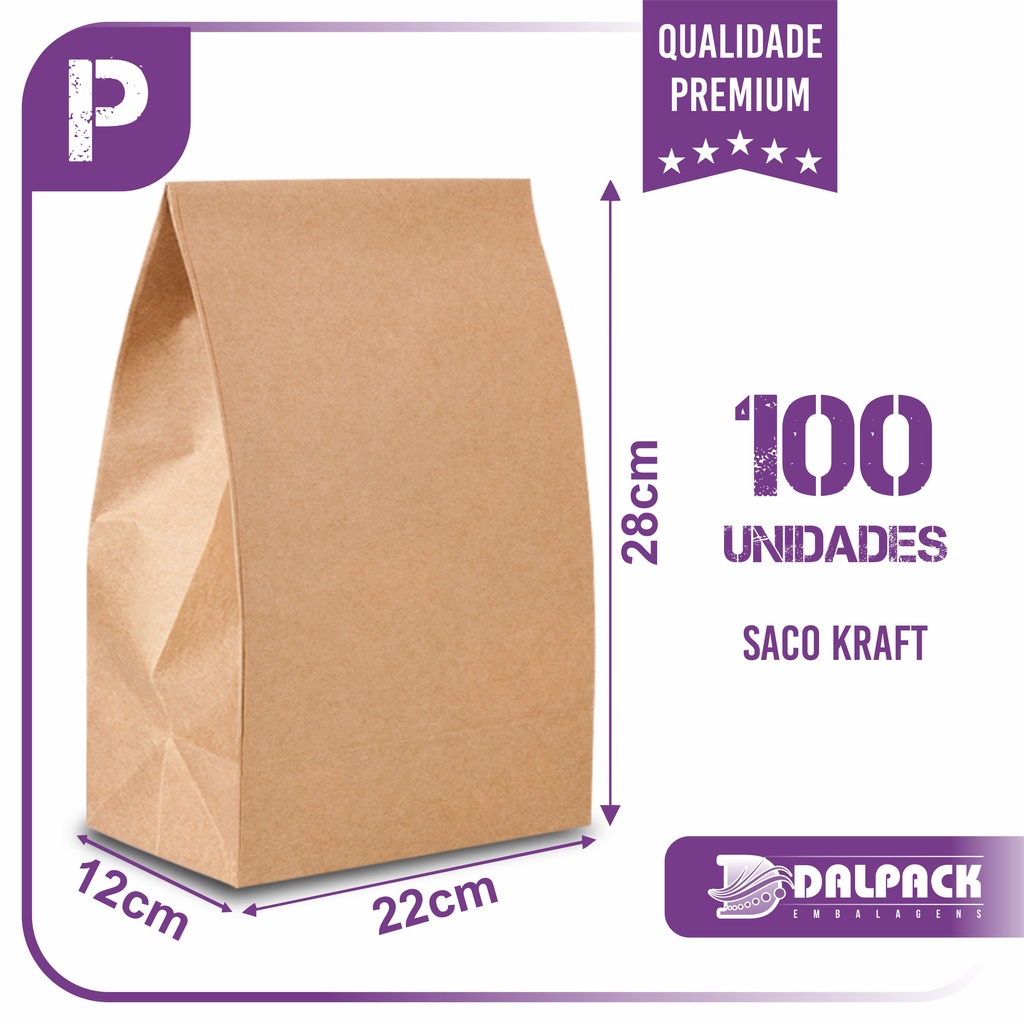 SACO PARA DELIVERY KRAFT - TAMANHO P, M, G - 100 UNIDADES