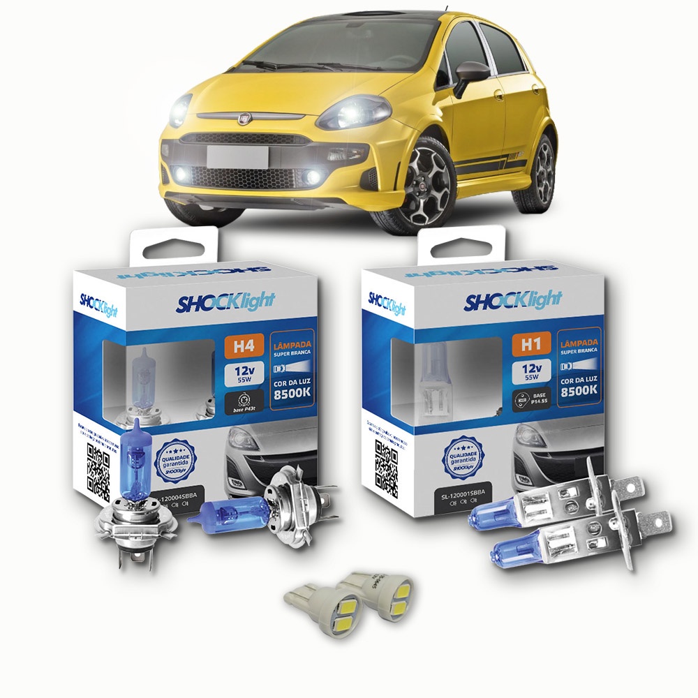 KIT lâmpadas Super brancas + LED T10 Fiat Punto TJET 1.4 2009/2013 Farol H4 + milhas H1 8500k