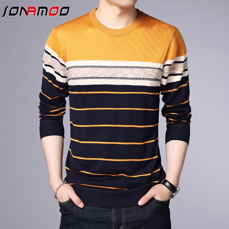 Camiseta Masculina Listrada Gola Redonda Manga Longa