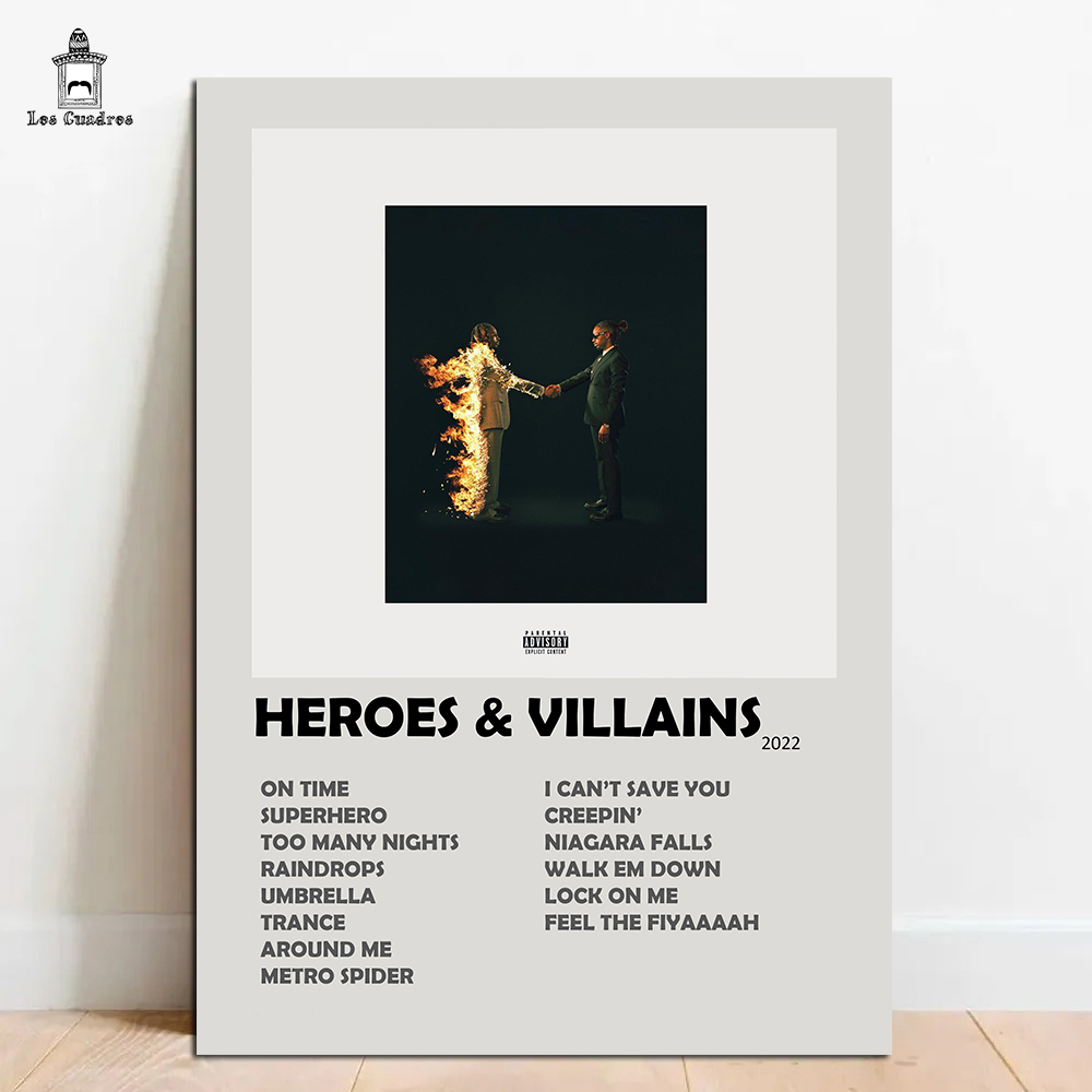 Quadro Placa Decorativa Metro Boomin Heroes & Villains em MDF 28x20cm