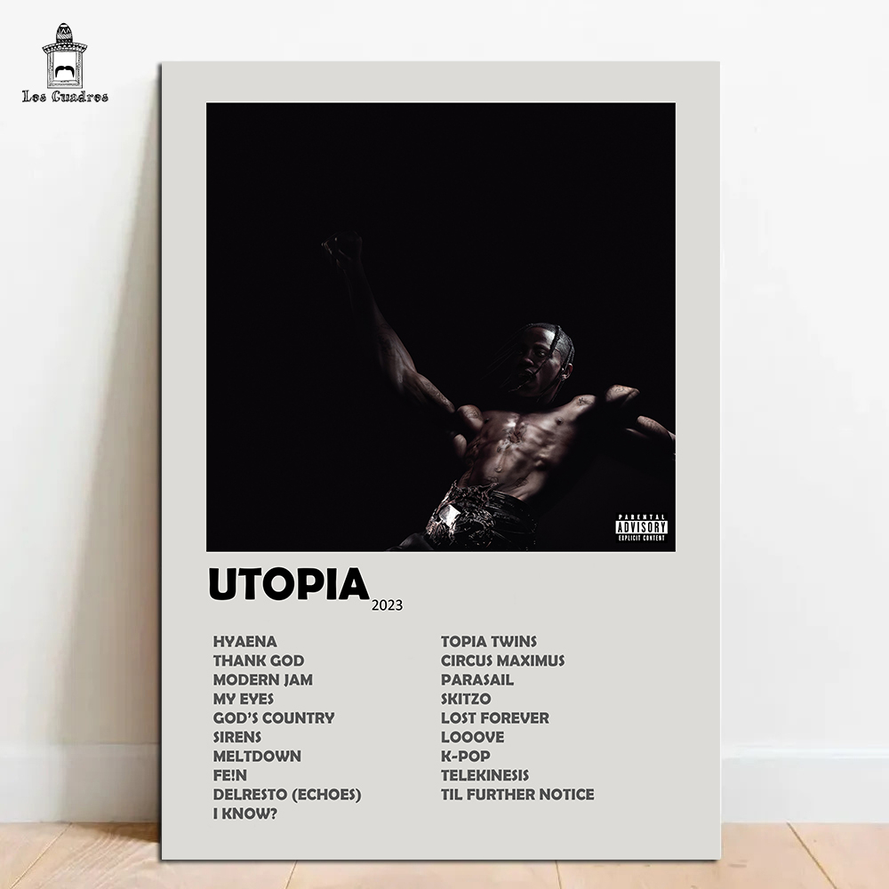 Quadro Placa Decorativa Travis Scott Utopia em MDF 28x20cm