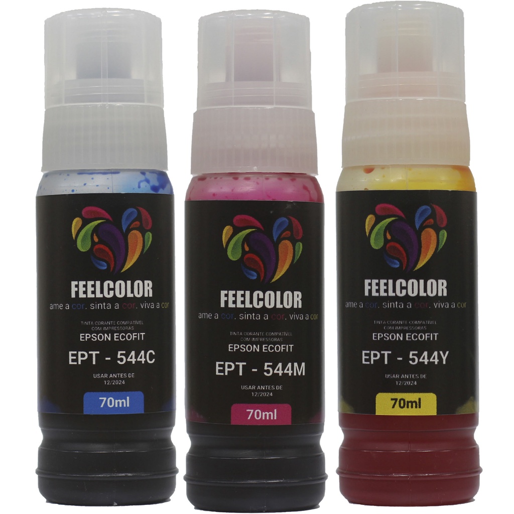 Kit 3x70ml Tinta Corante para Epson EPT-544 Coloridas