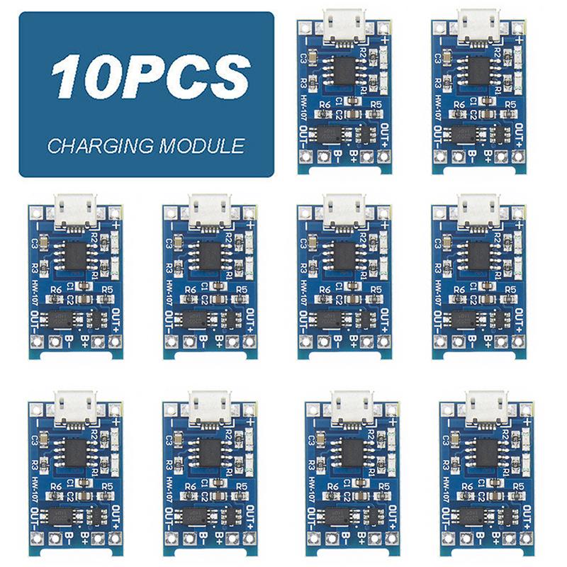 { 10pcs 18650 Módulo TP4056 Micro USB 5V 1A Carregador De Bateria De Lítio 18650 Placa Com Proteção