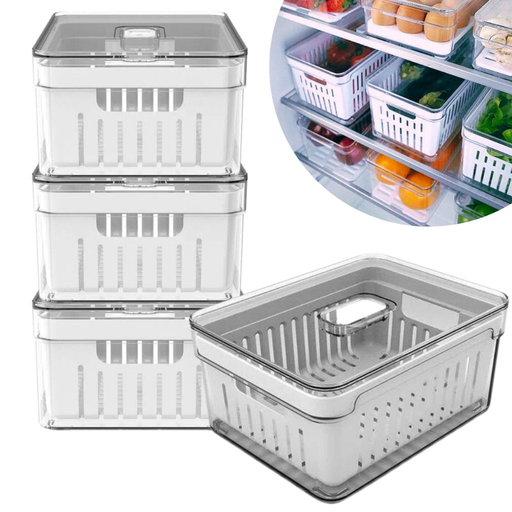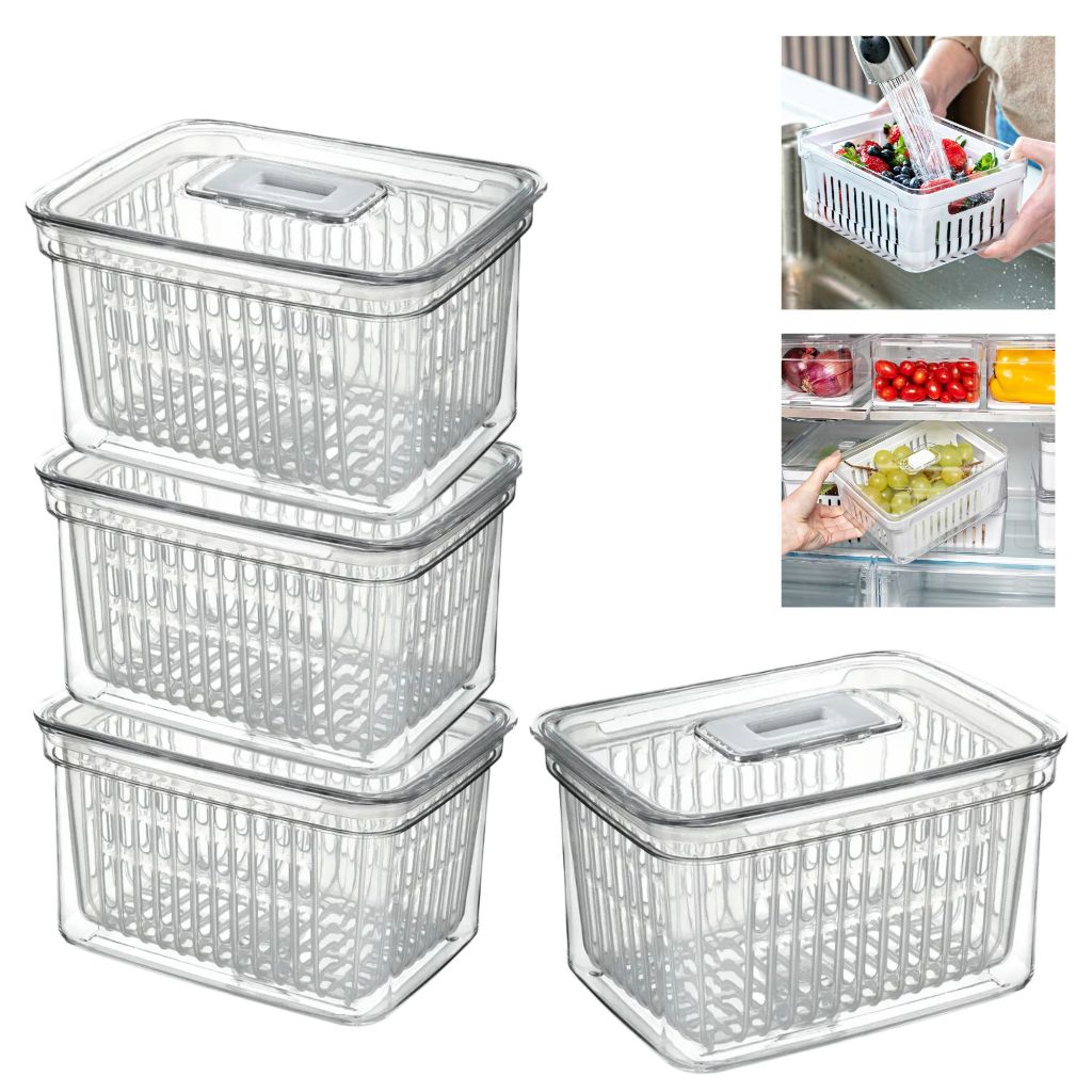 Kit 4 Organizador De Geladeira 2,2 Litros Alimentos Frutas Verduras Com Cesto
