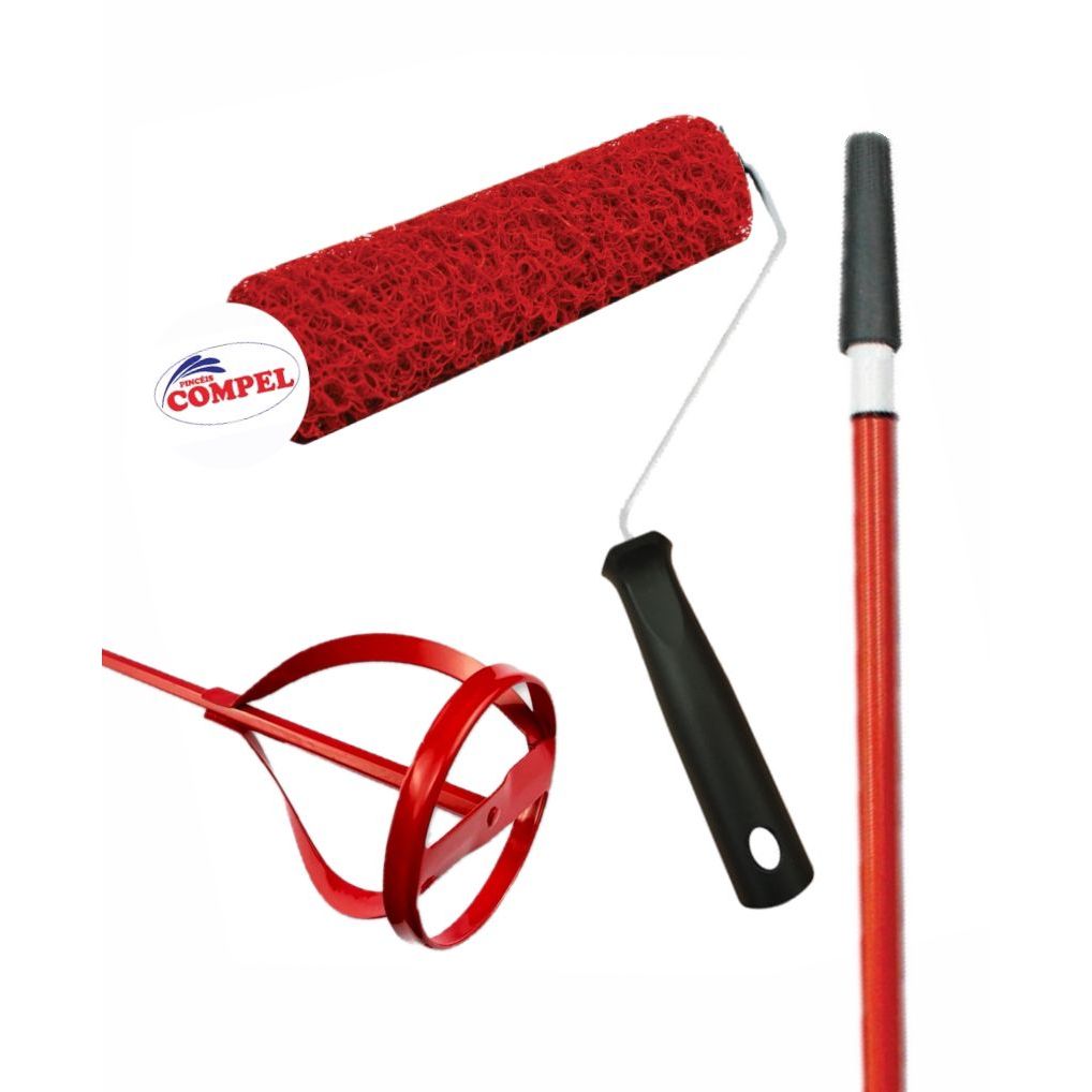 Kit Rolo de Textura Grossa Cabelo de Anjo 23cm C/Sup + Extensor Telescópio 2mts + Misturador P/Furadeira 80mmX400mm - Compel