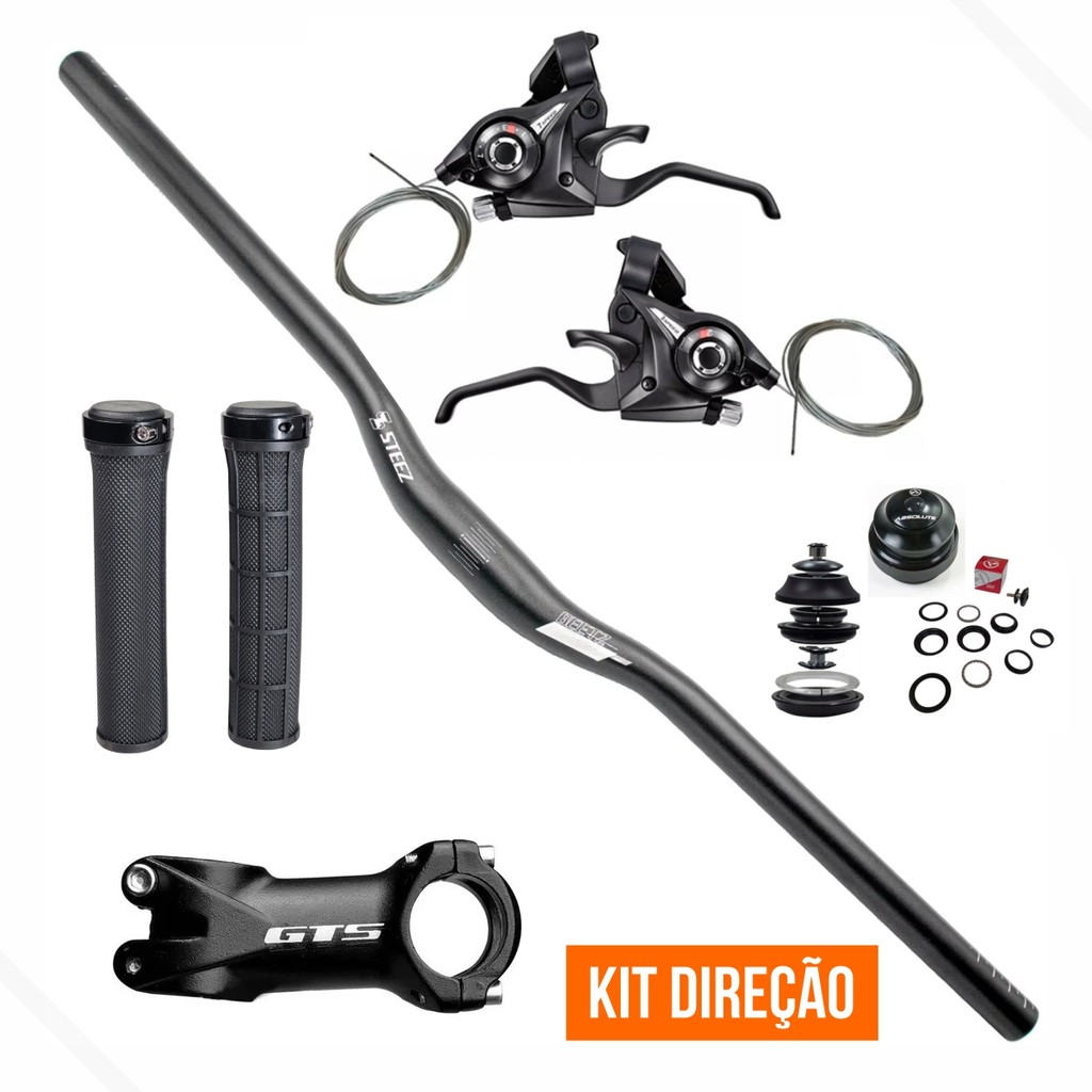 Kit Guidão Bicicleta + Sup. Mesa e Cx. de Direção + Manopla. c/ Trava + Alavanca Rapid Fire 21V GTS