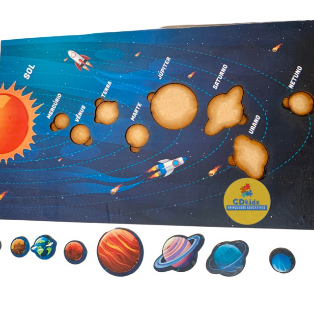 Sistema solar em tabuleiro MDF jogo de encaixe cognitivo planeta, educativos, Didático, Pedagógico, Montessori.