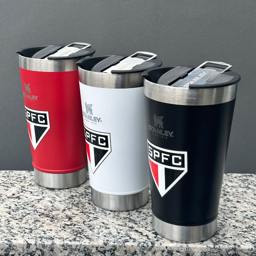 RAFA STORE- Copo térmico Time original com tampa abridor {SÃO PAULO PRETO, VERMELHO, VERMELHO, etc..} (quente, gelada).