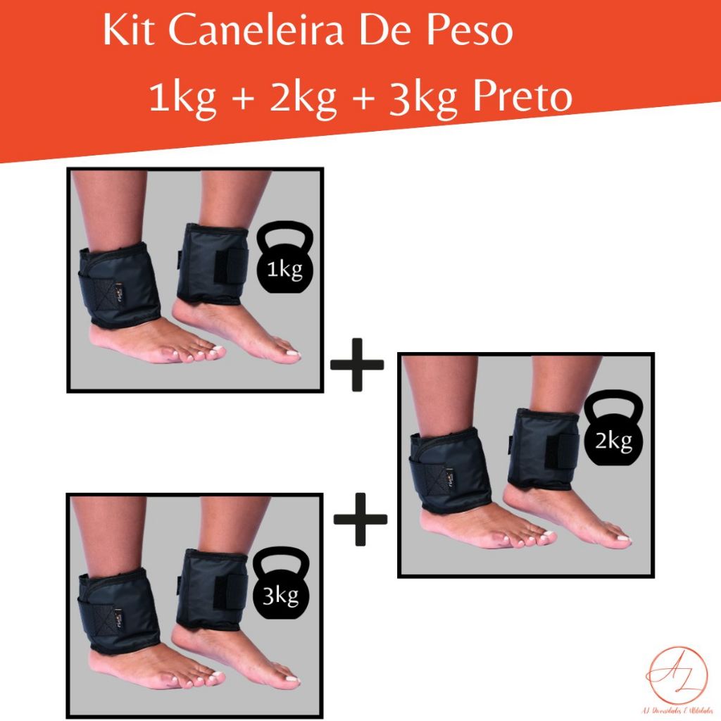 Kit Tornozeleira De Peso 1kg + 2kg + 3kg Preta Caneleira Peso Academia Treino Em Casa Pesinho 1+2+3kg Peso Para Academia