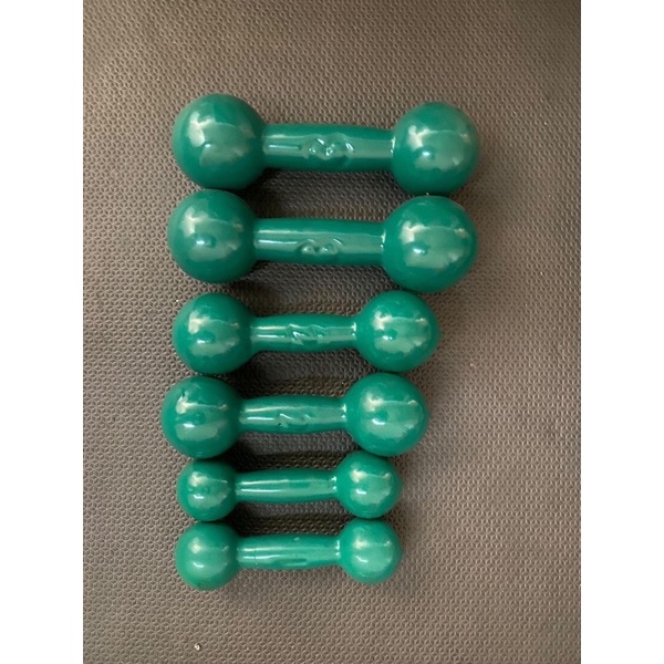 Kit par de halteres emborrachado verde 1kg + 2kg + 3kg