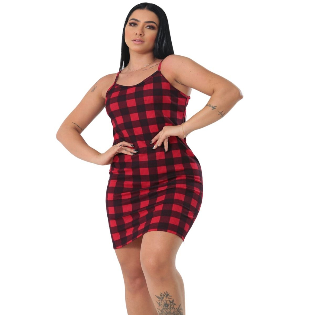 Vestido curto feminino xadrez tipo tubinho de alcinha canelado moda blogueira