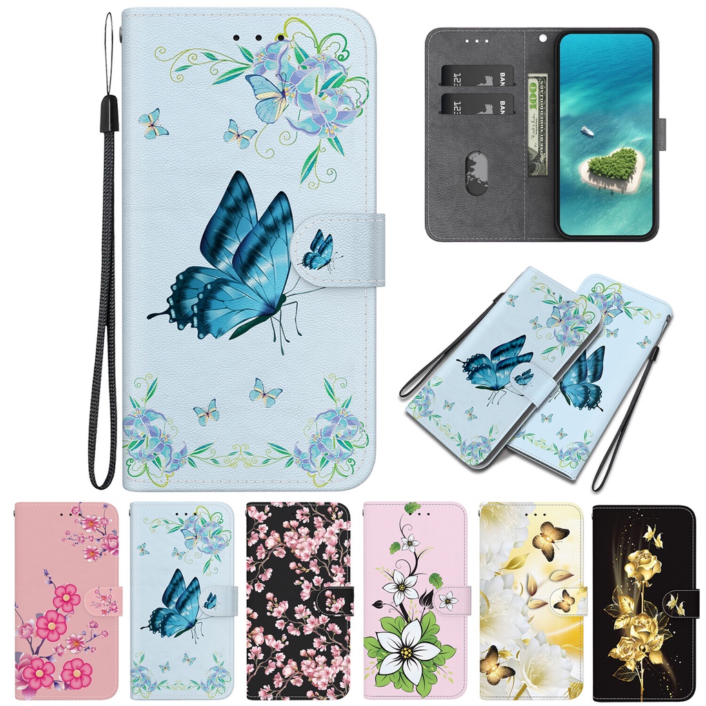 Compatível Com Motorola Moto Edge 40 Neo G84 G54 G14 G73 G53 G23 G13 G82 G52 E22 E22i Carteira De Pintura Borboleta E Flor Porta-Cartões Função Kickstand