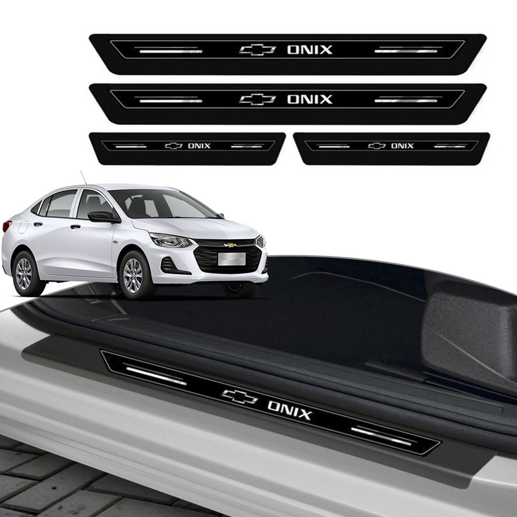 Kit 8 Peças Soleira Protetor De Porta GM Novo Onix Plus Premium 2020 2021 2022