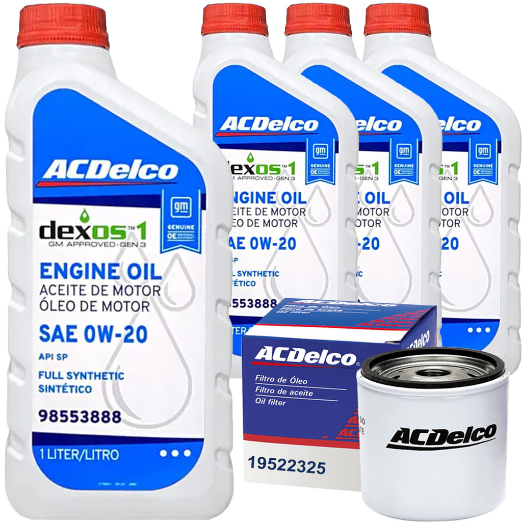 Kit 4 Litros De Oleo 0W20 Dexos1 Filtro De Oleo ACDelco Gm Onix B Aspirado 2020 2021 2022 2023 2024