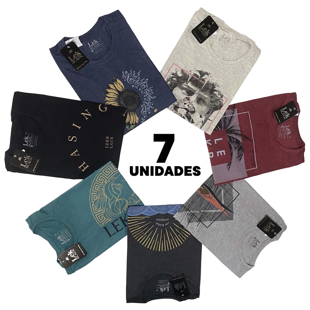 Kit 7 Camisetas Masculinas Estampadas Gola Redonda Manga Curta em Malha Algodão Premium