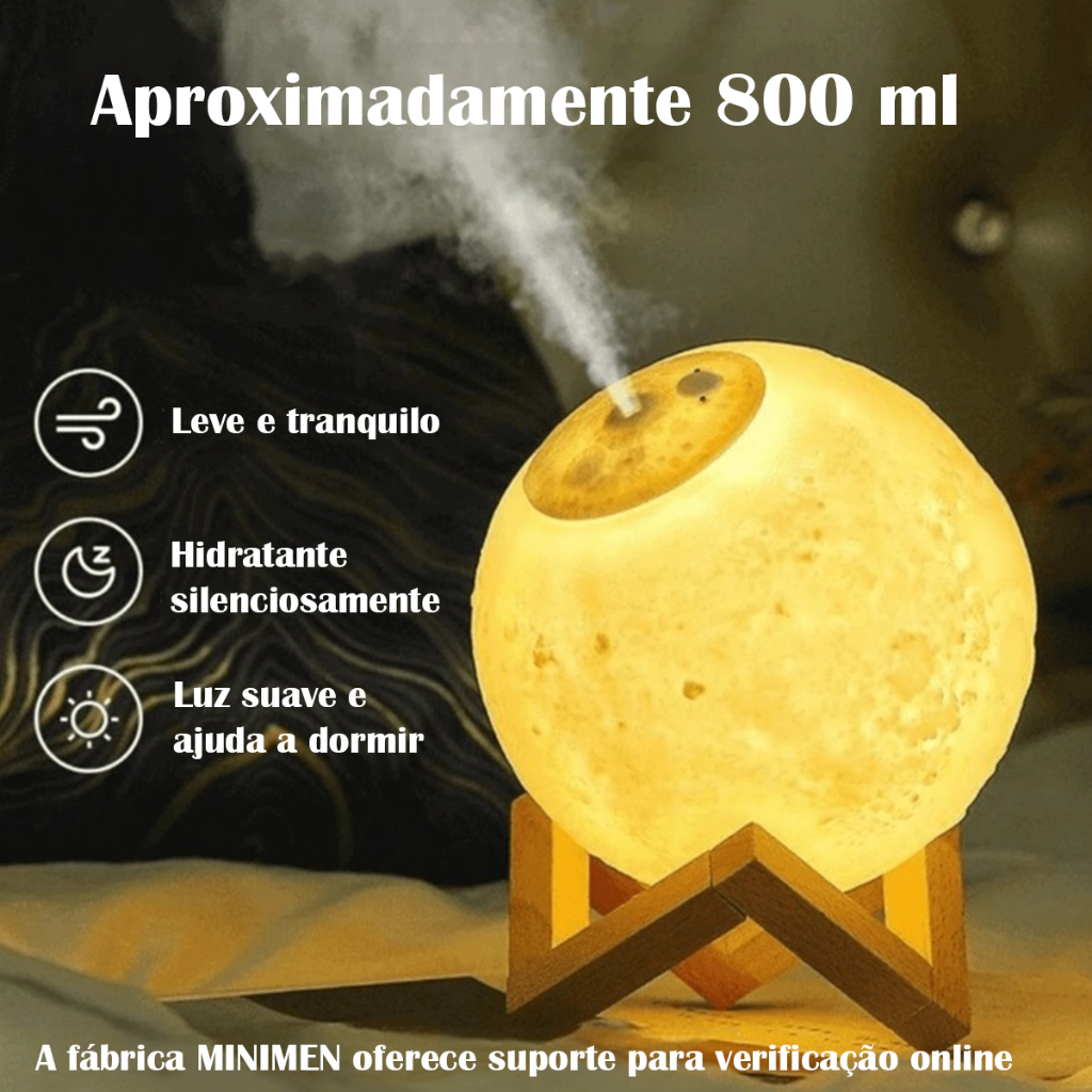 Luminária Abajur Led Lua Cheia 3D Com Umidificador De Ar 1,5 Litros Decoração Do Quarto