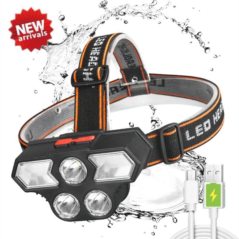 Lanterna Holofote de Cabeça LED com 5 Modos de Iluminação- À Prova D 'Água e Recarregável USB