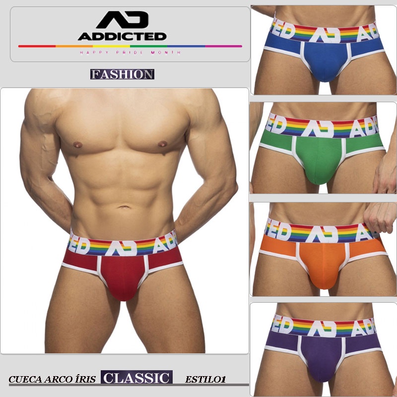 Novos Roupas Íntimas Masculinas Cuecas Cavados Briefs Rainbow Brilhante Colorido Convexo Em U Clássico Confortável