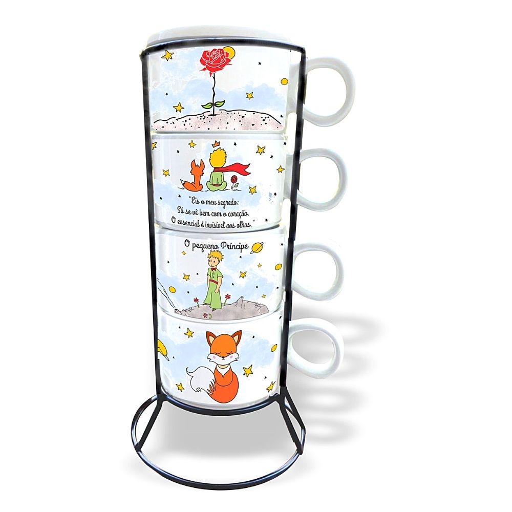 Torre Com 4 Canecas Empilháveis Pequeno Príncipe + Suporte