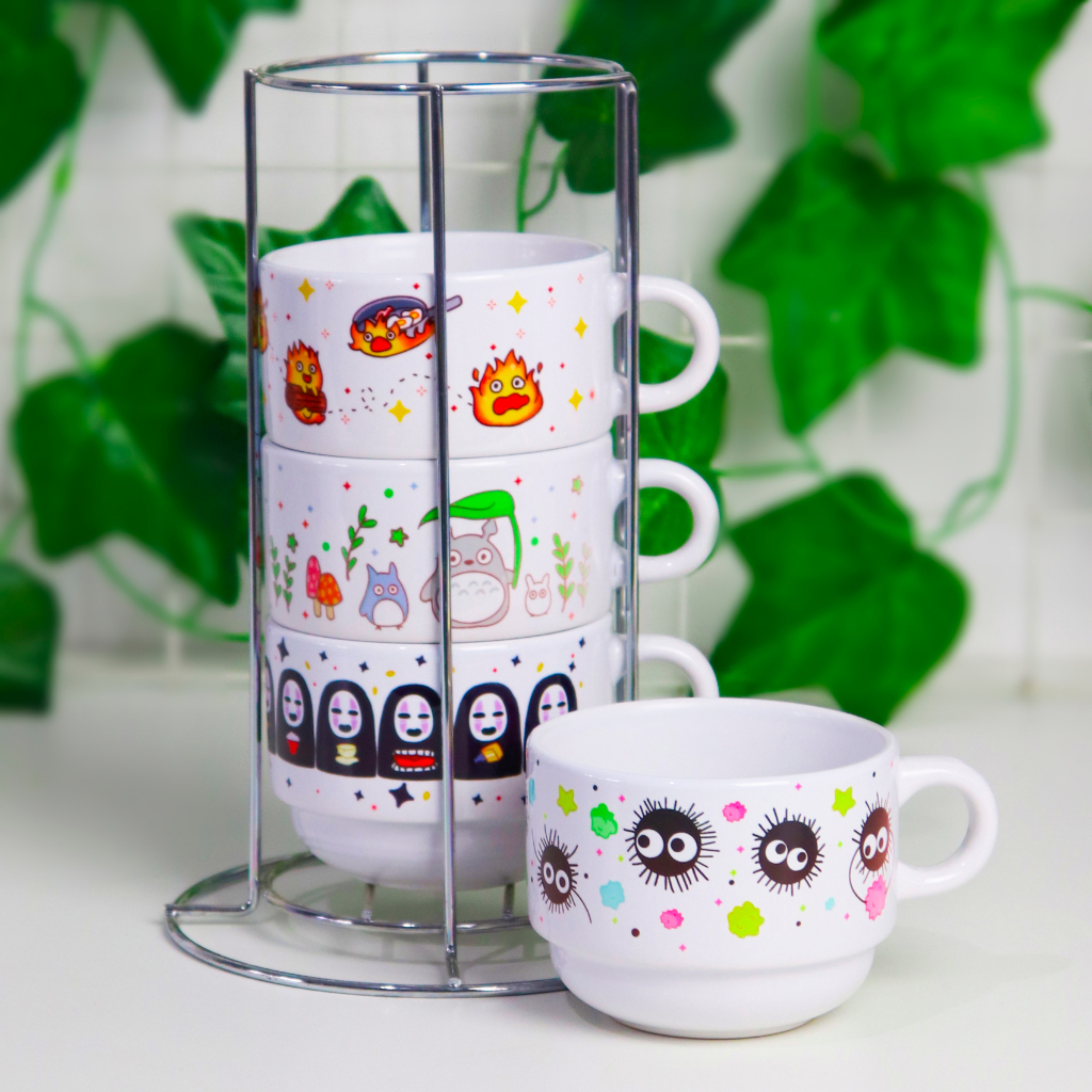 Torre de Canecas Empilháveis Studio Ghibli - Kit 4 unidades mais Suporte