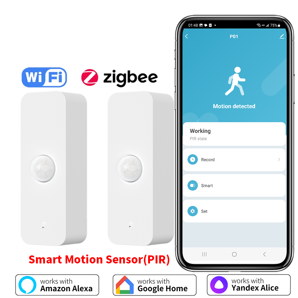 Sensor De Movimento WiFi Zigbee PIR Para Casa Inteligente Detector Infravermelho De Corpo Humano APP Monitoramento De Co