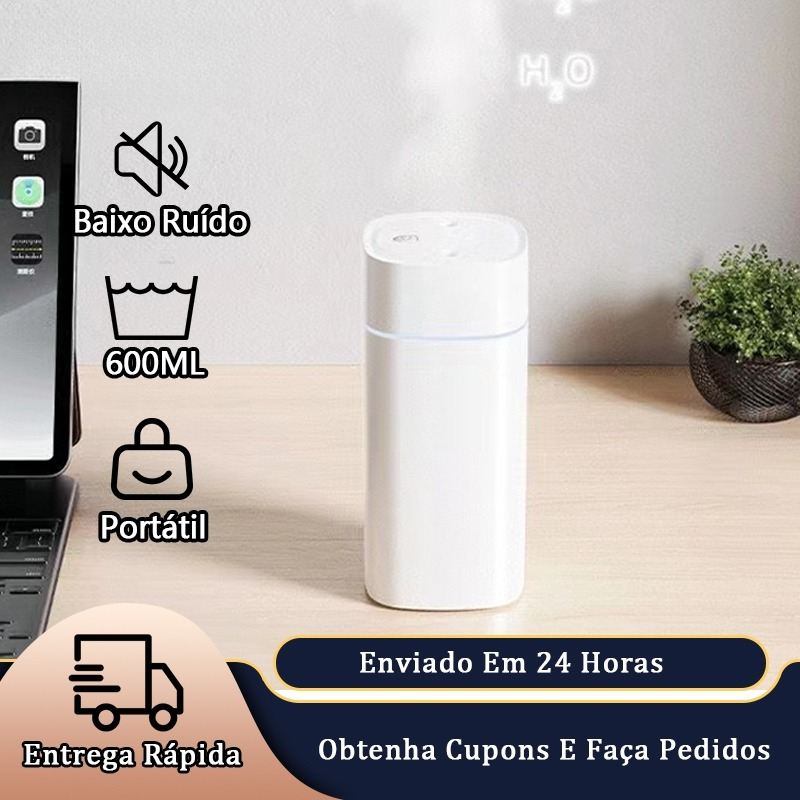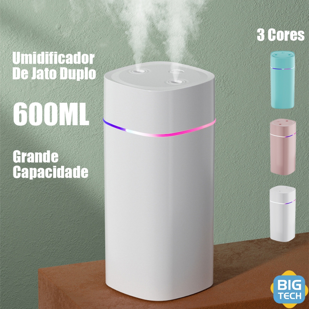 Umidificador De Ar Difusor Aromatizador Com Capacidade De 600ml E Luzes Coloridas Led Ultrassônico Escritório Bico Duplo Portátil