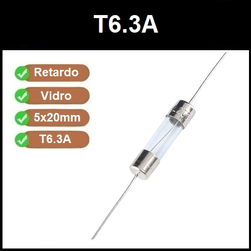5 Fusível Vidro Axial 5x20mm T6.3a T6,3a 6.3a 6,3a Retardo
